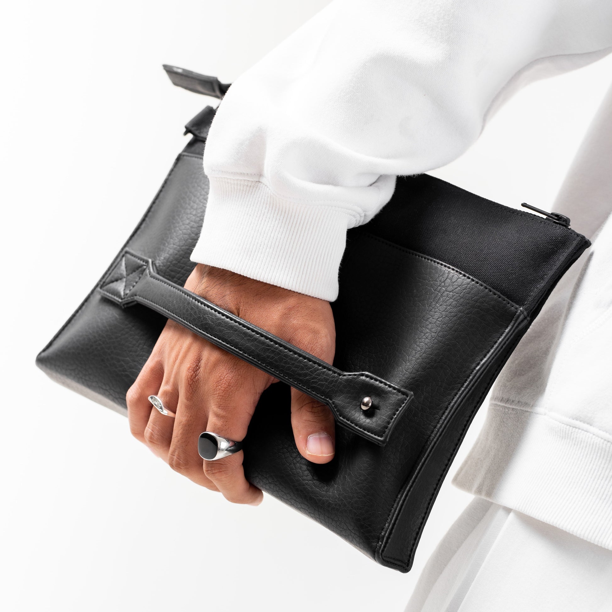 Menggabungkan minimalist style dari Gio Cardin dan street style dari Vront, menghasilkan sepasang sepatu sneakers hitam yang dilengkapi YKK water repellent zipper, 3M reflective tape, dan yellow webbing pull tab. Di sisi lain, Vront menghadirkan sebuah clutch multifungsi dengan ukuran yang ringkas. Dilengkapi dengan hand-strap leather, YKK black metal zipper, dan multi compartment untuk memudahkan penyimpanan barang essential kalian.